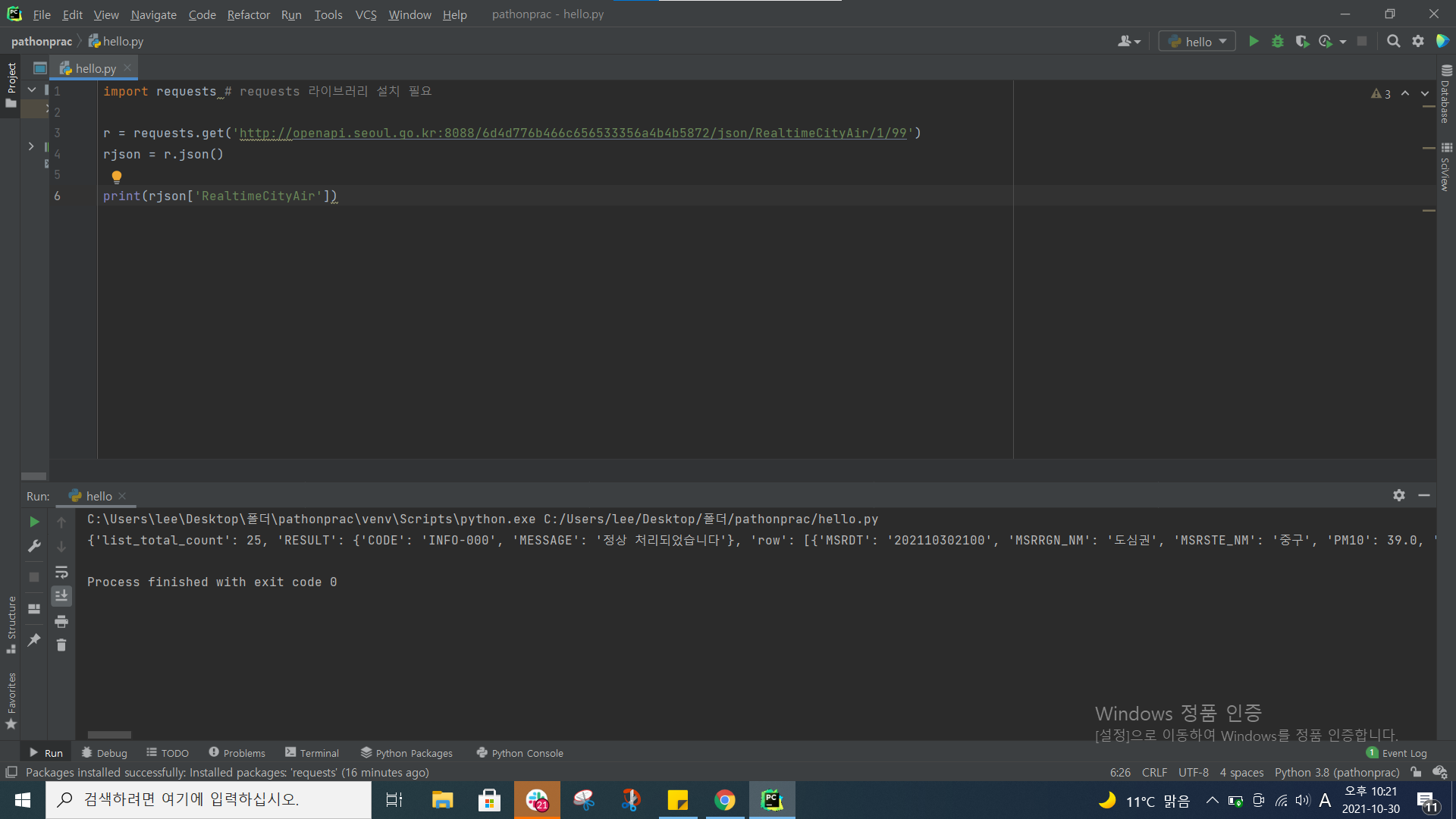 Requests 라이브러리 사용해보기 + List/Dictionary/함수/If/For문 연습
